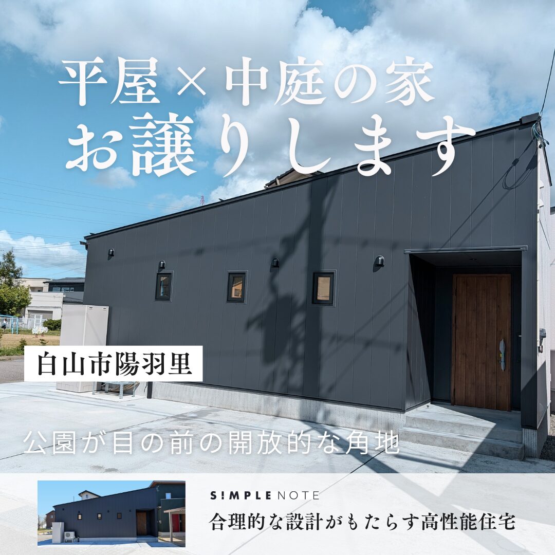 ※上記写真はシンプルノートの施工事例となります。白山市陽羽里平屋の建売物件の写真とは異なります。